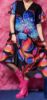 Elegancka sukienka midi/maxi z krótkim rękawem z materiału, który się nie gniecie. Krój trapezowy, w literki A, dekolt okrągły z rozcięciem - dzięki czemu może być w literkę V. Rękaw krótki szeroki, delikatnie rozkloszowany - przed łokieć, po bokach kieszonki wpuszczone w szwie. Piękne połączenia kolorystyczne i wzory. Print na sukience jest taki sam z przodu i z tyłu. Polecamy od S/M do 42/44, może małe 44/46 max jeśli wymiary pozwolą. Sukienka nowa z metkami. Made in Italy.